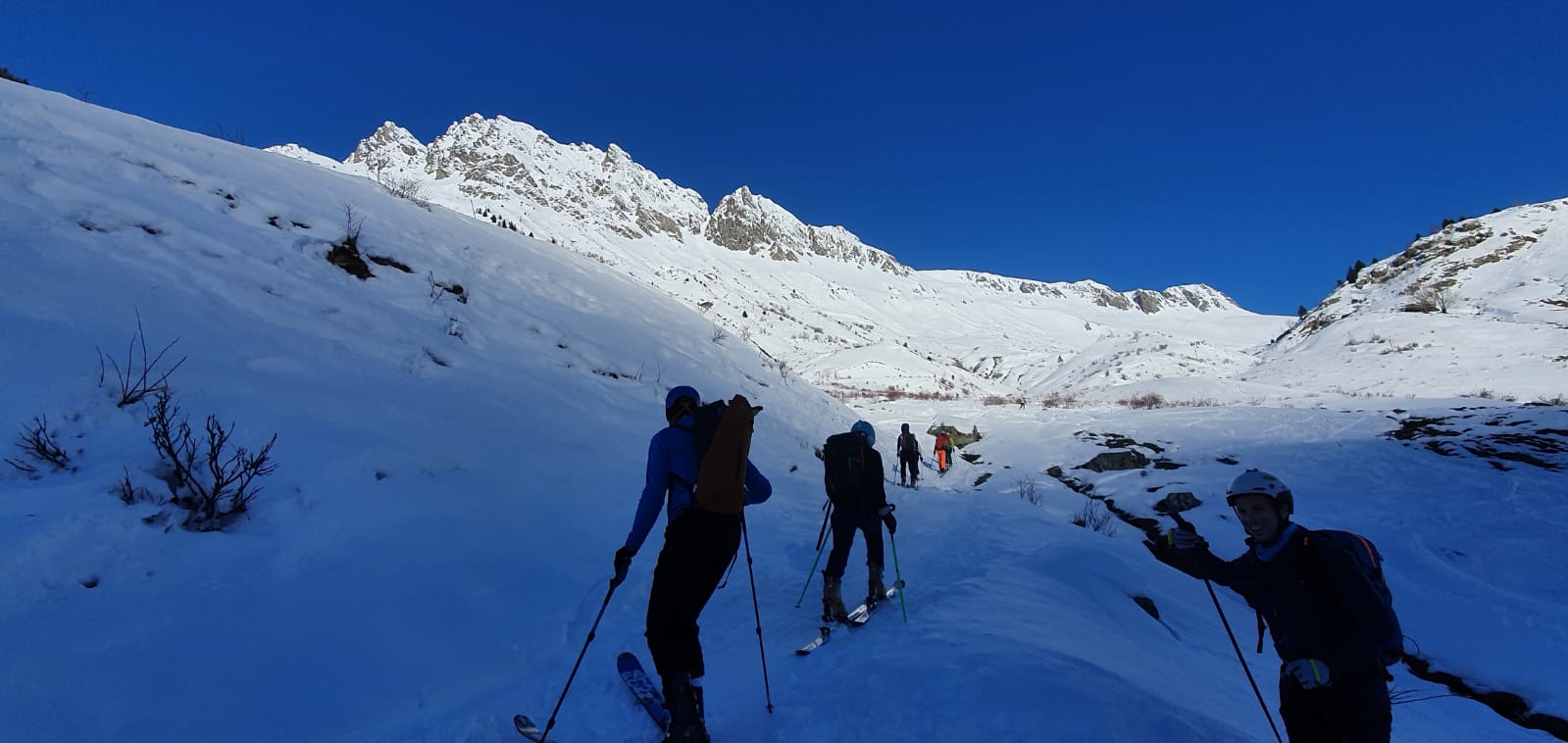 Dimanche 17 décembre, sept nouveaux adhérents ont eu l’opportunité de découvrir le ski de randonnée dans le magnifique massif de Grande Rousse. Accompagnés d’Andrea L. et de Pierre L., nous avons grimpé jusqu’au col de Sabot, avec une montée de 750m.